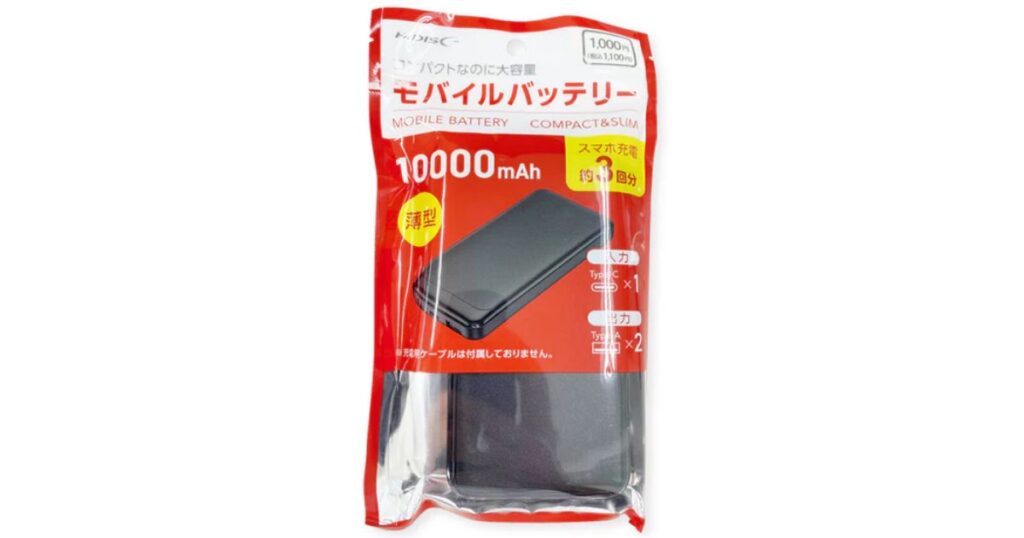 ダイソーでは1,100円(税込)で10,000mAhという大容量モデルが売られていることもあります。